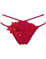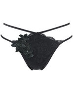 彫刻のように立体的なレースが美しさを演出。シンプルなカラーリングがひとつひとつのパーツを引き立てます。バラの花をイメージした存在感のあるアップリケには輝くクリスタルをあしらいました。フロントのカッティングと大胆なループ使いがセクシーなポイント。凝ったディテールとゴージャスなデザインが、ホリデーシーズンを華やかに彩ります。