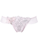多くの歴史や芸術が息づく博物館のように美しい都市、ローマの魅力を表現。ローマ建築特有のアーチやドーム、柱の装飾からインスピレーションを受けたレースとプリーツが調和する神秘的な仕上がりに。フロントには、グロリア・デ・ローマというバラの花をクラシカルにアレンジしたアップリケを大胆にあしらいました。バック中心にはさりげなくレースアップリケを飾り上品な印象に。ロマンティックな色合いが、まるでタイムスリップしたような気分へと誘います。