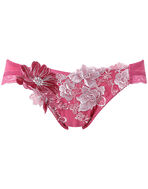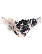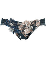 はっきりとした輪郭で表現された花々と、芍薬の花をイメージしたアップリケがゴージャス。ドラマティックなカラーリングが魅力を際立たせます。花びらの上で輝く繊細なクリスタルと、フロントにきらめきを与えるラメ糸が豪華さを演出。バックには優美なアップリケをさりげなく飾って、後ろ姿の華やかなアクセントに。