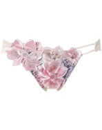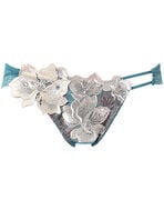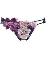 自然をモチーフにした優雅な曲線と、透明感がある豊かな色彩の調和がロマンティック。花々が重なり合う様子をナチュラルにデザインすることで、咲き誇る花の美しさを表現。アネモネをイメージした繊細なアップリケの花びらには、上品な輝きを放つスワロフスキー・クリスタルをあしらいました。肌がのぞくサイドのデザインがセクシーなワンポイントに。