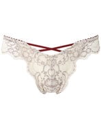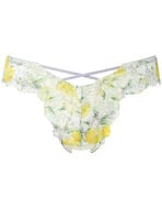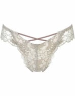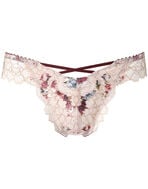 「重力ケアブラ ノンワイヤー(BXB194)」とペアコーデが楽しめるTバックショーツ。バックは総レースタイプでひびきにくく、華奢なフォルムでありながらヒップをほどよく覆う安心感のあるはきごこちが人気のデザインです。ポイントはフロントのクロスデザイン。ペアのブラジャー前中心のクロステープとさりげなくリンクさせてアクセントに。デザインはワントーンのプリントタイプからトレンド感のある花柄まで多彩にラインアップ。