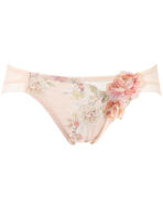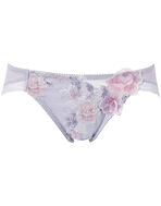 フロントのレースには繊細に輝くラメ糸を散りばめ、華やかなアップリケをワンポイントにあしらった優雅で贅沢なショーツ。色とりどりに咲き誇るお花のモチーフが、美しくロマンティック。透け感のある上品なアップリケを添えることで、高貴でエレガントな雰囲気に仕上げました。あさめのはきこみ丈で甘すぎずすっきりとした印象に。