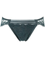 優美なリバーレースをふんだんに使用した贅沢なショーツ。あさめのはきこみ丈ですっきりとした印象です。前ウエストのチュールピンタックが軽やかなアクセントに。繊細なディテールが光る、洗練されたデザインです。バックは豪華な総レース仕上げで華やかに。アウターにひびきにくいのもポイントです。