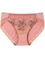 ●フロントの上辺は透け感のある素材で大人っぽく仕上げたショーツ。