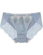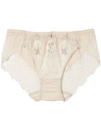 ●フロントにエンブロイダリーレースをほどこしたショーツ。