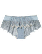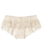 ●フロントにエンブロイダリーレースをほどこし、バック裾はストレッチレースで仕上げた贅沢な印象のデザインショーツ。
