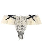 ●全体をレースで仕上げた、贅沢な印象のソング(Tバックショーツ)。