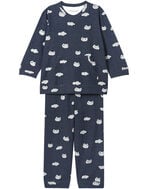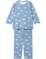 ・色々な表情のネコの顔や雲をジャカードで表現した柄