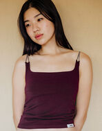 カジュアルなサマーニット素材。一枚で着てもフロントのスクエアカットがデコルテをキレイに見せてくれます。お手持ちのTシャツの上に合わせてもスクエアカットが印象的な着こなしに。レースチューブトップ(CGG247)とのレイヤードスタイルや、シアー感のあるTシャツ(WGG111)の上にキャミビスチェとしてもおすすめです