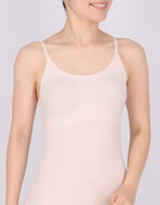 立体感と厚みのある左右一体型のピーナッツ型パッド内蔵(取りはずし可能)で、上向きで立体的なバストシルエットでありながら、バストトップ間隔が離れず位置が安定