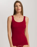 シルケット加工をほどこした、光沢感のある綿100%(身生地)のタンクトップ。