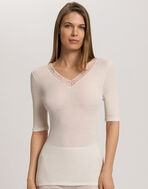 ソフトで軽やかなメリノウールにシルクをブレンドした、リブ編み素材(身生地)のエレガントなインナー