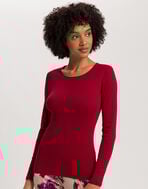 シルケット加工をほどこした、光沢感のある綿100%(身生地)の長袖トップス。