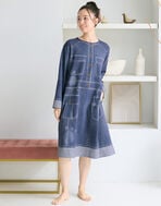 台所等で火を扱う場合には、表面の毛羽に引火することがありますので、十分にご注意ください。また、裏返して着用しないでください。