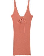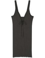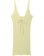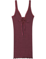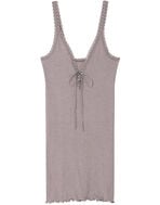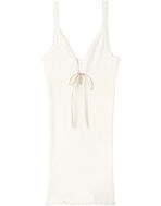 ●編上げリボンで胸もとの開きをアウターにあわせて調整できる、キャミソール。