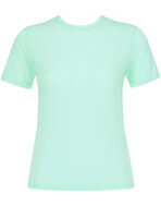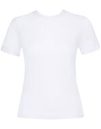 上品な透け感が特徴のリブTシャツ。シアー感のある生地はインナーとしてサラッと一枚でも使える上に、シンプルなのでビスチェやキャミソールをレイヤードするなど、お手持ちのファッションとレイヤードして楽しめます。「cooomy.」のブラアイテムやキャミソールをイン・アウトに組み合わせて着用するのもおすすめです