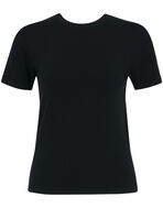 からだのラインにほどよくなじむストレッチ性とフィット感。襟ぐりが浅くレイヤードがしやすい