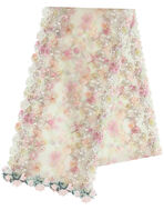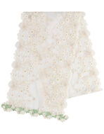 レースを贅沢に使用したストール。両端にはアクセントのケミカルレースをほどこした豪華な一枚です。キラキラと輝くラメ糸が華やかさを演出。普段のファッションにアクセントとして取り入れることでエレガントな印象に。羽織る・巻く・飾るなど使い方によってさまざまなおしゃれを楽しむことができます。