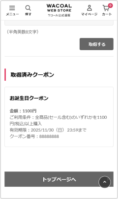 取得済みのクーポン一覧から、誕生日クーポンを選択します。