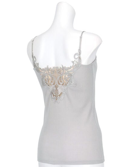 アウターから見えてもあり◎<br>コーディネートの主役としても使えるインナーが入荷しました♪<br><br>ポイントはこのバックスタイル!<br>ケミカルレースを使用しているのでレースが立体的になっています!<br>そしてこのレースの下にはベージュのチュールが<br>付いているのでブラジャーのアンダー部分を<br>見えにくくしてくれます⁎ˇ◡ˇ⁎<br><br>BLカラーとGYカラーがございますが、個人的には<br>BLカラーの方がブラジャーのアンダー部分は透けにくいかなと思います!<br><br>チラ見えではなくガッツリ見せても可愛いので<br>ぜひチェックしてみてください〜⭐︎<br><br>