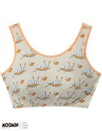 こんにちは!<br>すっかり葉桜になって、暖かくなってきましたね!<br>気温の変化がめまぐるしく、体調管理に気をつけている毎日です…!<br><br><br>さて、ウンナナクールの新作はどんどん入荷しております!<br>昨年、店頭でも人気だったムーミンコラボアイテムの新作たちが発売されていますよ〜!<br>そのなかでも今回はナイトアップブラをご紹介します!<br><br>デザイン2種、各2色、計4種類あります♪<br><br>ニョロニョロ柄(BE・MEカラー)<br>ニョロニョロたちがボートを漕いでいる愉快な柄です。<br>また小説『ムーミン谷の仲間たち』の中で、ボートに乗るときはニョロニョロは奇数だと書かれています(^^)<br><br>ぷかぷか柄(OB・PUカラー)<br>ムーミンと仲間たちが、海にぷかぷかと浮かんで遊んでいる、ユーモアあふれる柄です。<br><br><br>どちらもムーミンの世界観がたっぷりで<br>おうちでも楽しい時間を過ごせるのではないでしょうか?<br>私もナイトアップブラは3年ほど使い続けてるのですが<br>とにかく寝ごこちがよく<br>付属の左右一体のピーナッツ型パッドを使えば<br>くつろぎタイムにもぴったりなリラックスブラとしても使えるので、おうち時間が豊かになります☆<br><br><br>同じデザインのショーツをセットにすると<br>なおテンションが上がりますよ!笑<br><br><br>母の日のプレゼントにもおすすめです♡<br>初夏をムーミンと過ごすのはいかがでしょうか?(^^)