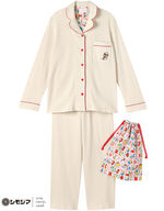 みなさんこんにちは、ぴーやです♪<br><br>ぽこぽこっとしたワッフル生地がさりげなかわいい♡【MADE WITH シモジマ開襟パジャマ】をご紹介いたします!<br><br>ゆったりめなサイズ感や綿100%の柔らか〜い生地でリラックスしたいおうち時間にぴったり(^.^)<br>胸ポケットに加え、ズボンにもポケットが付いているのも嬉しいんですよね〜<br><br>そして!なんと!!<br>パジャマとお揃いチェリー柄の巾着付きなんですo(^▽^)o\かわいい〜〜/<br>パジャマが入るサイズ感の巾着なので、旅行のお供にしちゃお⭐︎と計画中です!<br><br>ぴーやが購入したPIカラーは、濃ゆすぎず、薄すぎずな絶妙なピンク色!パイピングのクリーム色も相まってなんだか懐かしい配色です♪今回のシモジマコラボデザインともぴったりな色合いですよね♪<br><br>自分用にはもちろん、クリスマスプレゼントにお悩み中の方にもおすすめなアイテムですよ!<br>ぜひ写真をもとにサイズ感などご参考にしてくださいね⭐︎<br><br>それではみなさまもいいおうち時間を〜⭐︎<br>