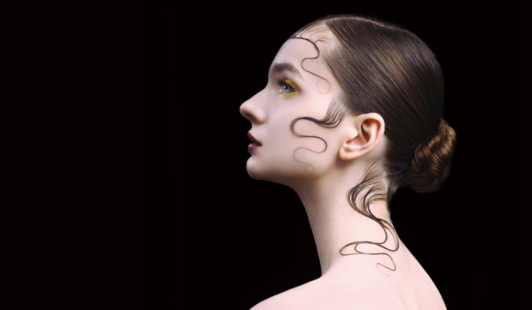 長く美しい髪をデザインポイントに、立体的なバラのパッカーアップリケやスワロフスキー・クリスタルを贅沢に用いて、ひときわラグジュアリーに。
