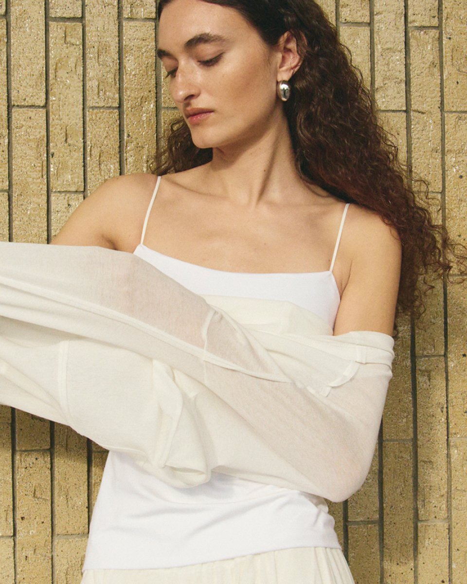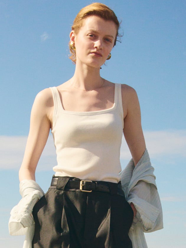 カットラインにこだわり、1枚でもシャツなどのインナーとしても使いやすいデザインに仕上げました。