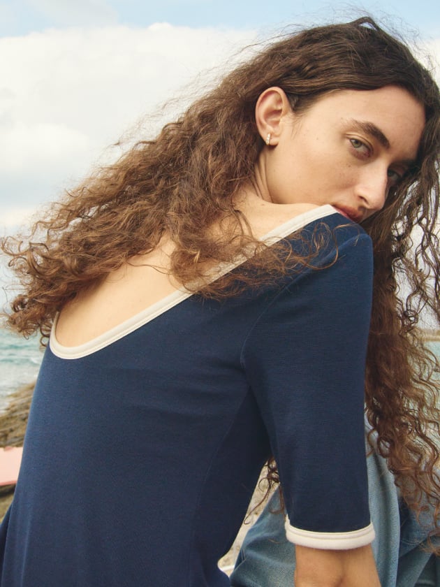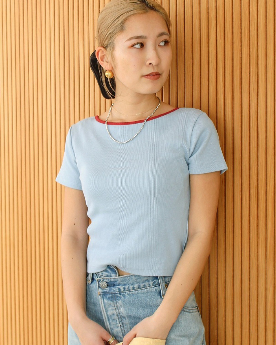 ストレートなネックラインで、アウターとのレイヤードにぴったり!