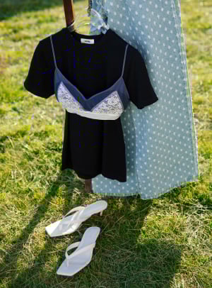 パッドをはずすとレースの透け感が際立ち、重ね着しやすい軽やかな印象に!