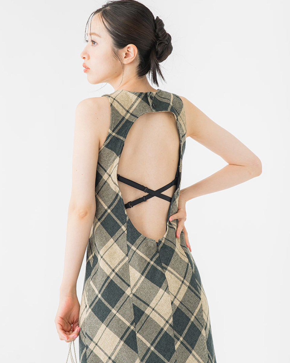 商品をバックが大きく開いたデザインで、