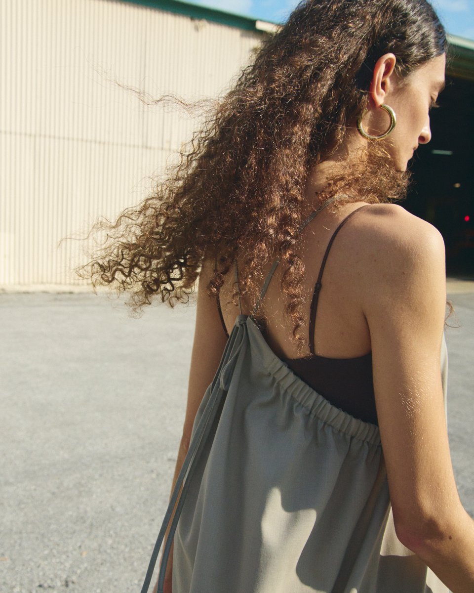 華奢な2本ループのストラップで、デコルテがスッキリとした見た目に◎【MERCURYDUO × AMPHI】