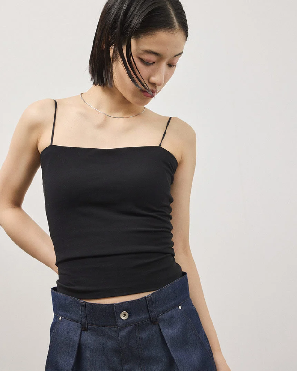 Vネックのカップ付きキャミソール。
